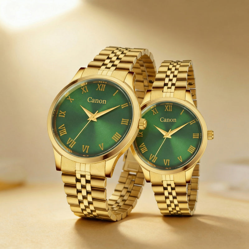 Luxury Golden & Green Couple Watch With Roman Numerals CN-485