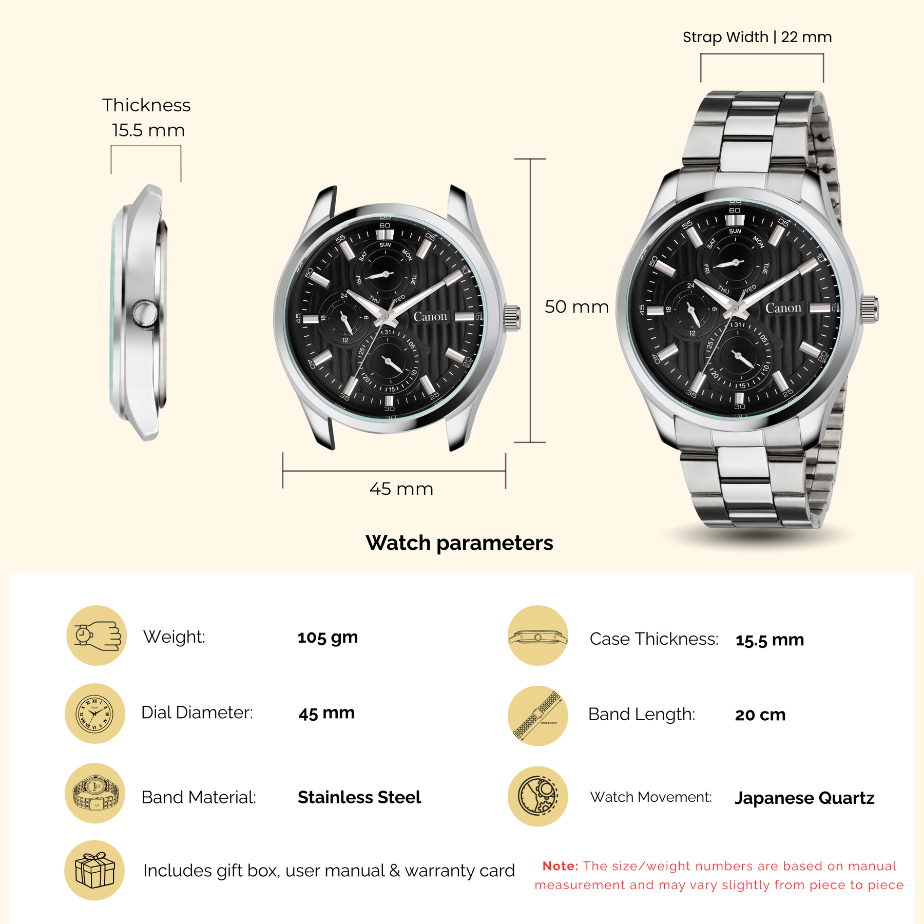 Introducing The Dominion Black, the most commanding men's black watch in the Canon Quartz Dominion Series. This watch is designed for the man who leads from the front. It combines the timeless power of a Jet Black dial with the brilliant contrast of polished silver stainless steel.