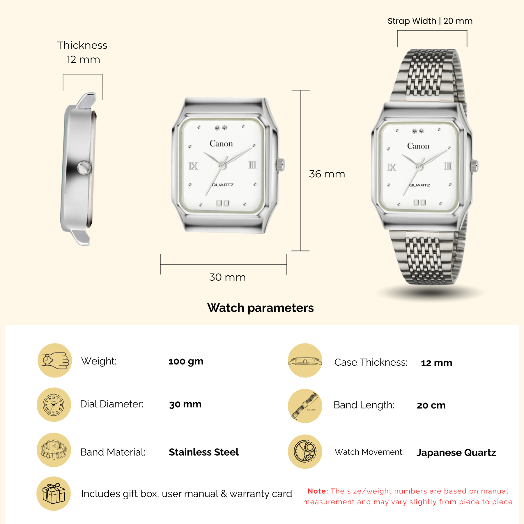 The Men's Silver Vintage Square Watch CN-456 is ready to become your trusted companion. With a balanced design, high-quality materials, and the precision of Japanese quartz movement, this watch embodies everything sought after in common vintage watches for men.