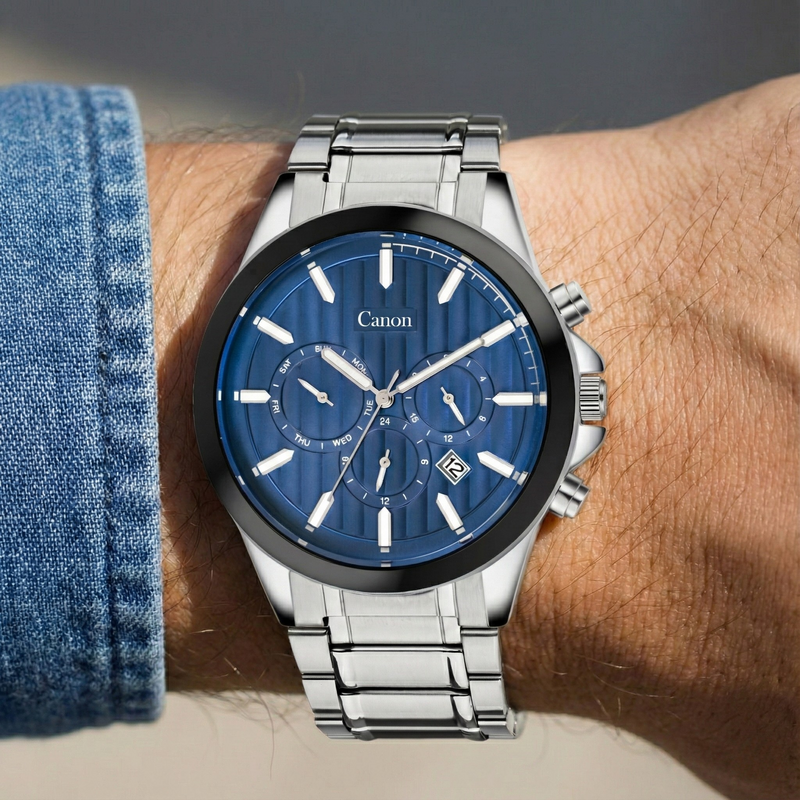 The Canon Quartz Sports Chronograph - Navy Blue Racing Edition represents this evolution. It is a timepiece designed for the contemporary driver, the modern athlete, and the professional who demands precision engineering without sacrificing style. This watch doesn't just tell time; it measures performance with the calm confidence of 2025's most advanced racing machines.
