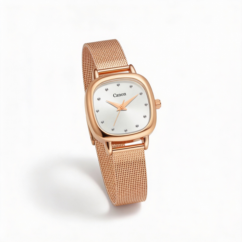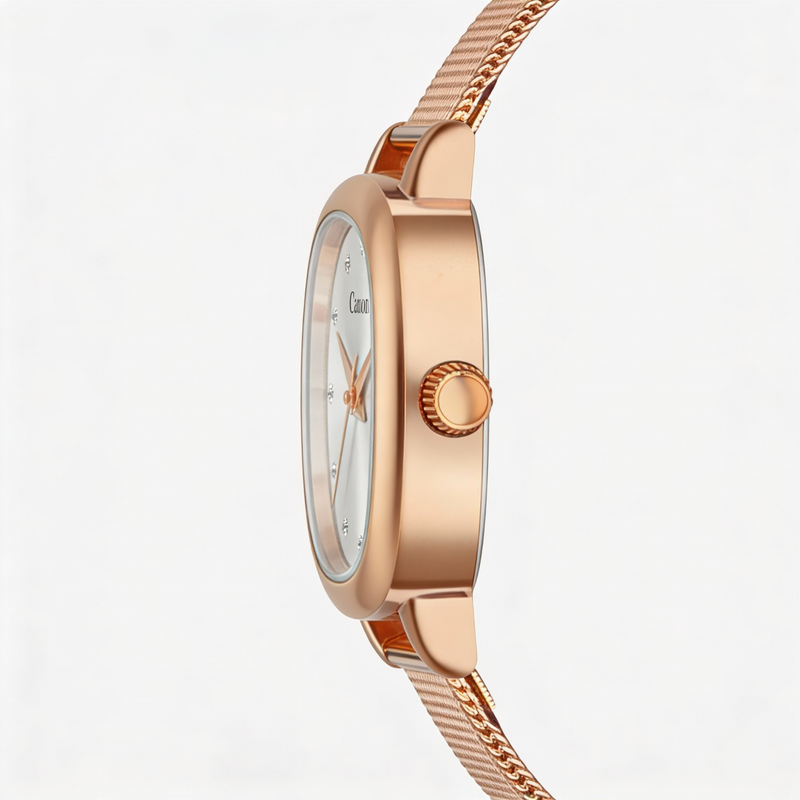 The epitome of chic, contemporary elegance. A soft cushion-shaped case in rose gold frames a luminous silver dial, set only with brilliant crystals. Completed by a sleek, comfortable Milanese mesh strap, it's your perfect accessory for a sophisticated evening out.
