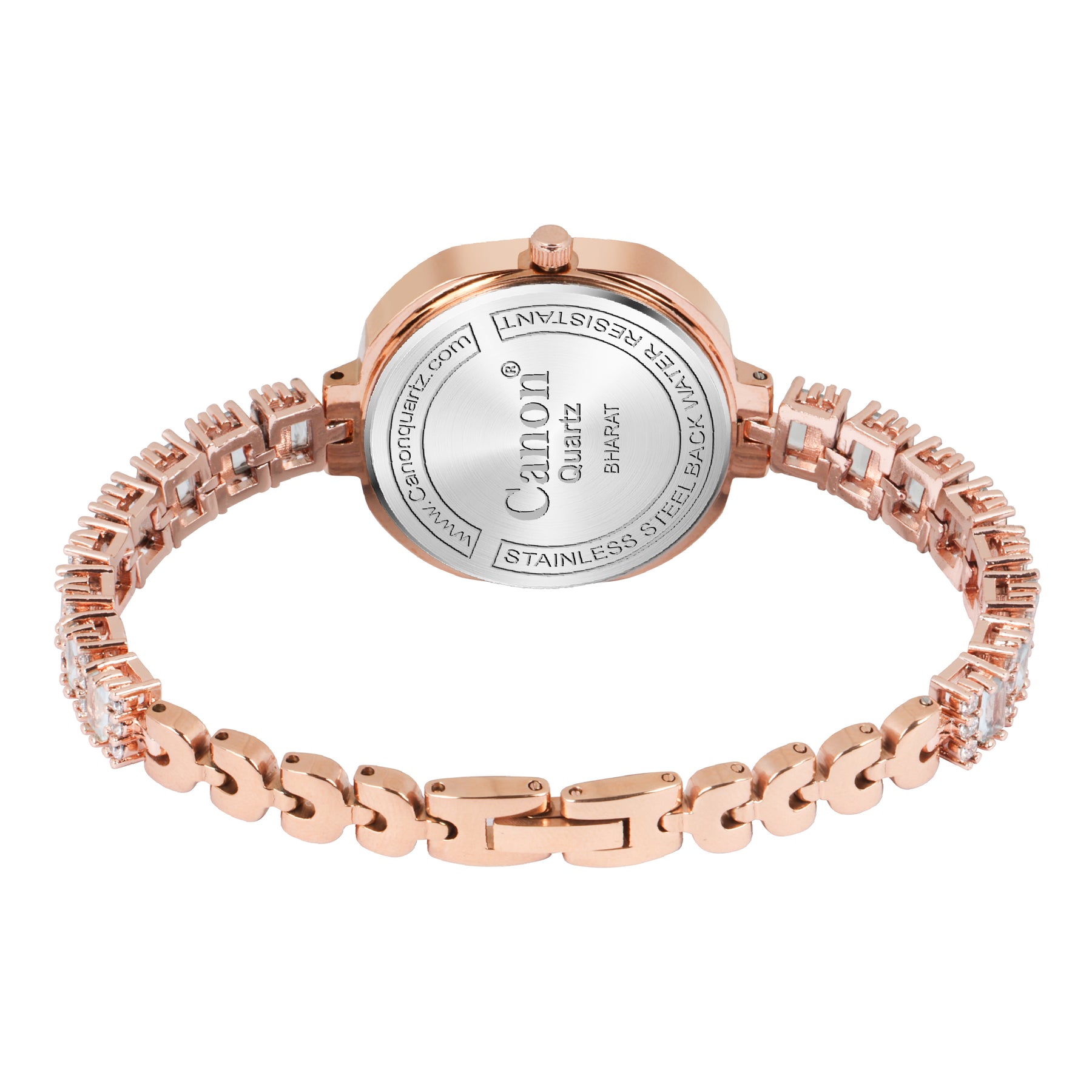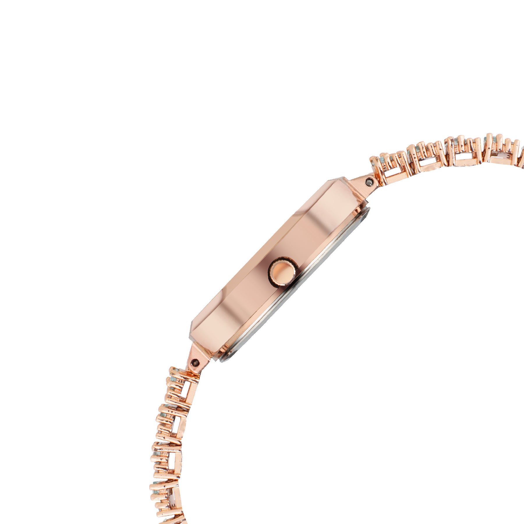 This watch’s rose-gold tone strap draws inspiration from fine jewellery craftsmanship. It features alternating baguette-cut and round crystal-like accents that capture and reflect light gracefully. These accents enhance the premium glow of the timepiece, making it a head-turning accessory wherever worn. The bracelet perfectly complements the dial and ties the entire design together with unparalleled elegance.