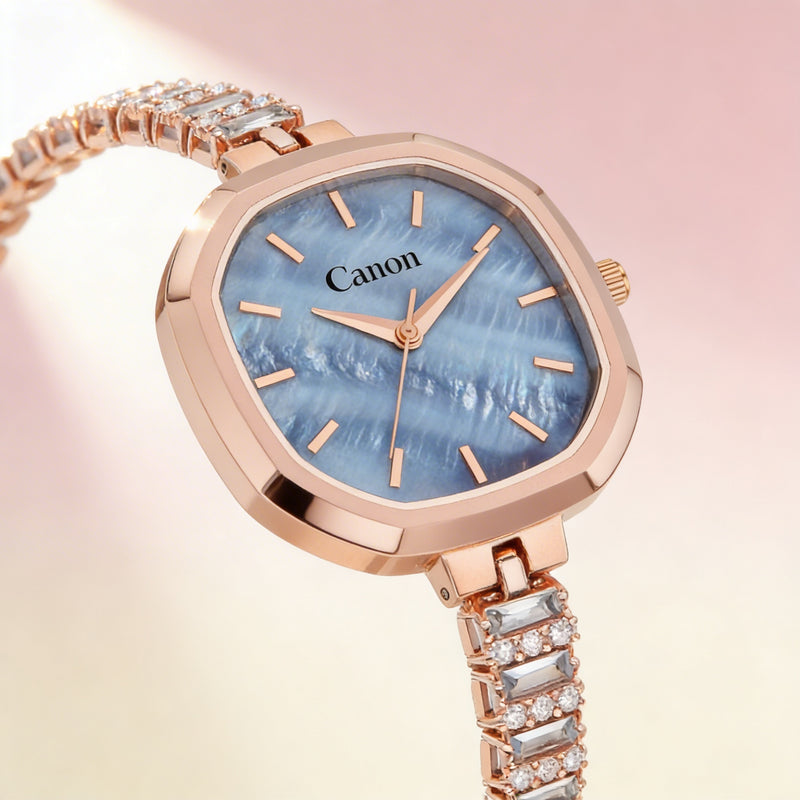This women's luxury watch features an elegant cushion case design that sets it apart from conventional timepieces. The polished rose-gold tone finish adds a layer of timeless and feminine appeal. Its sophisticated silhouette complements both modern and classic styles with ease. This watch is an essential accessory for every woman seeking grace and refined style in her collection.