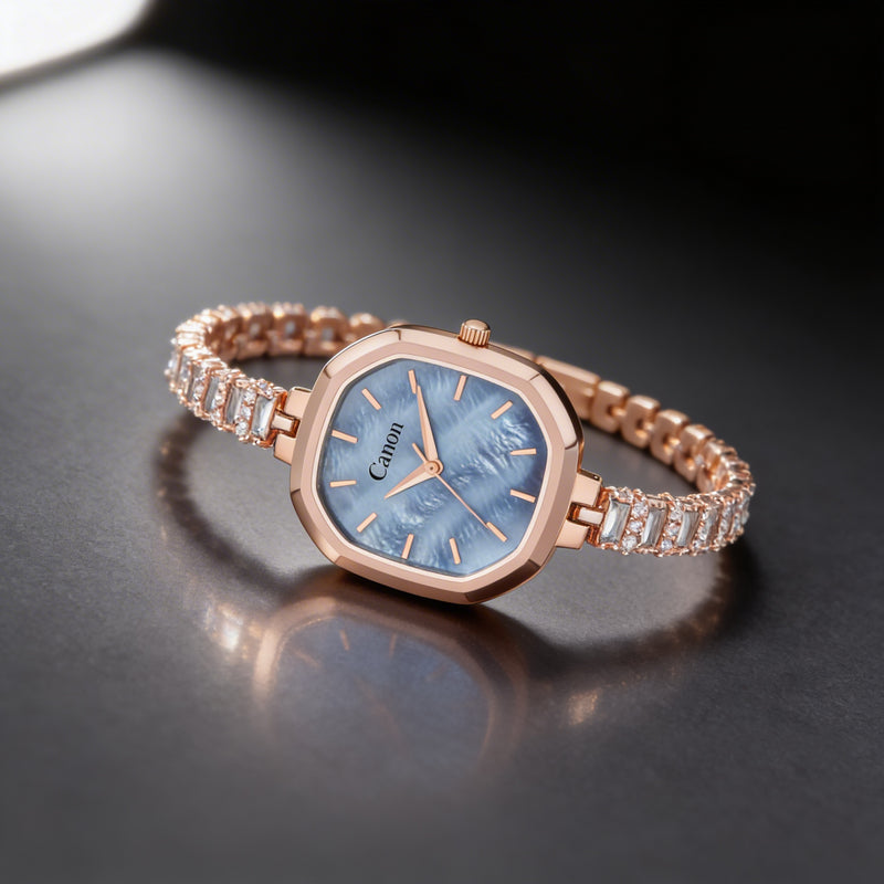 The Serenite Collection introduces a masterpiece where horology meets high-end jewellery. This rose gold blue dial women's luxury watch captures the essence of quiet luxury. It blends a serene, minimalist aesthetic with the radiant sparkle of a fine jewellery piece, making it a true symbol of elegance. Each element of this watch is thoughtfully crafted to appeal to women who appreciate timeless beauty combined with functional sophistication.