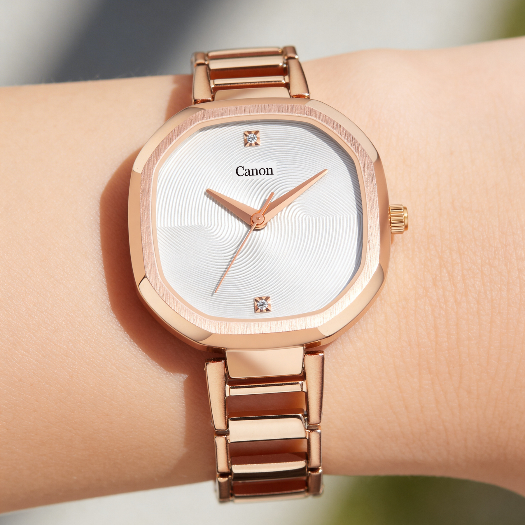A crisp square case that delivers a modern, fashion-forward profile with a refined edge.