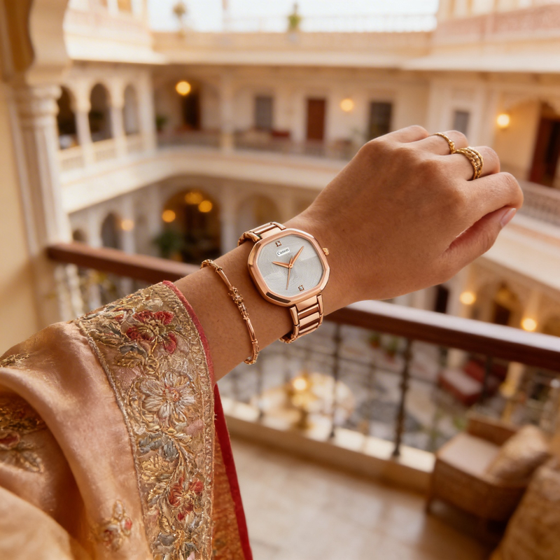 Rose-gold detailing adds a soft glow that elevates the watch from simple to statement.