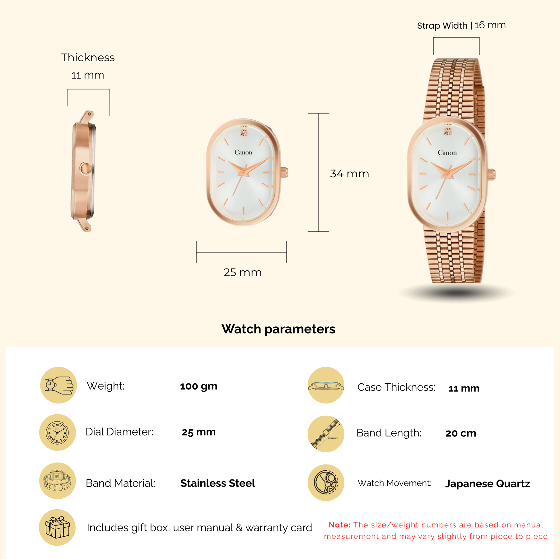 A: Canon Quartz states its watches are powered by a reliable and precise Japanese movement, positioned for accuracy and durability.