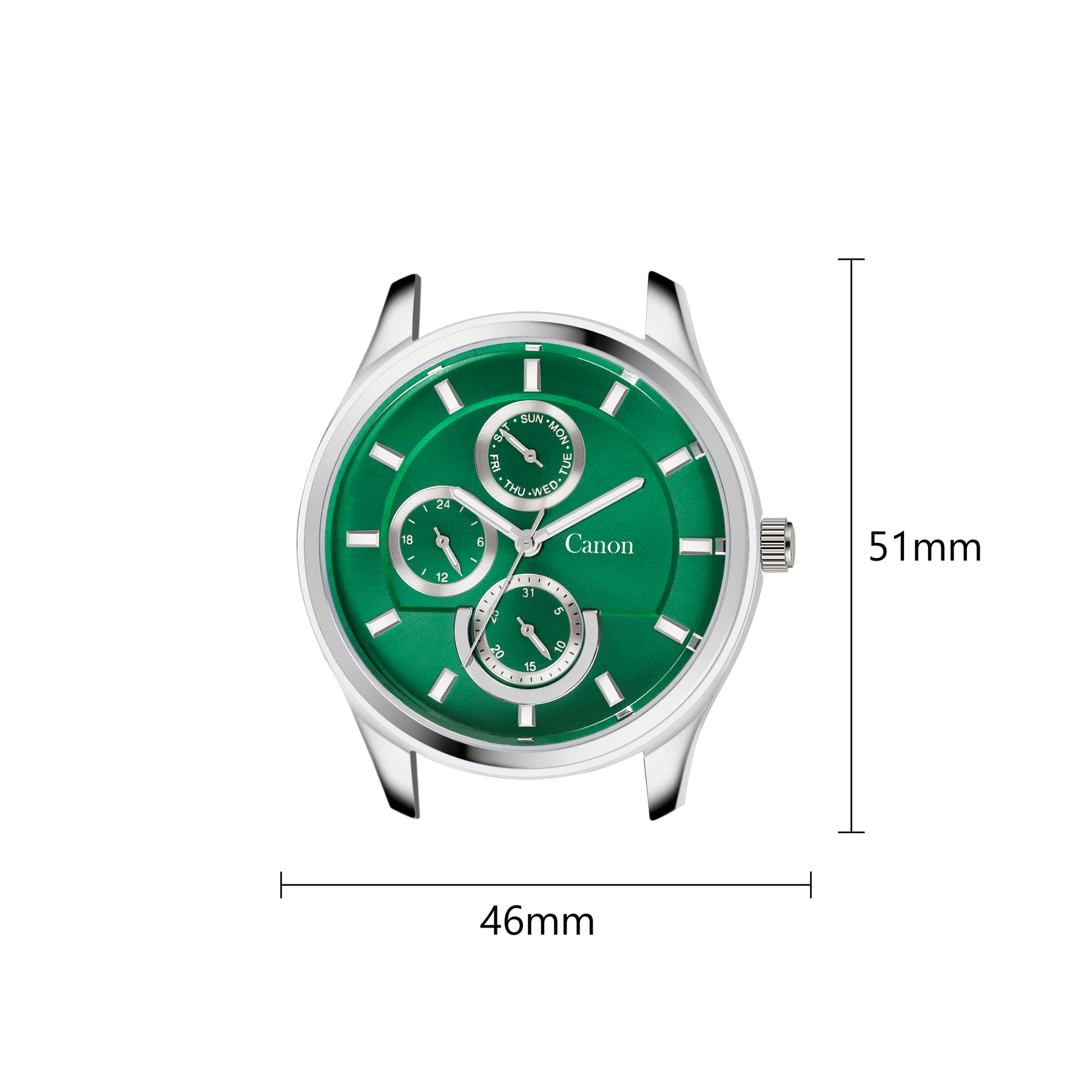 The three sub-dials do more than track time; they add a layer of technical sophistication to the watch face. The "panda-style" layout, with silver-framed sub-dials popping against the green background, creates a high-contrast, highly legible dashboard for your day.