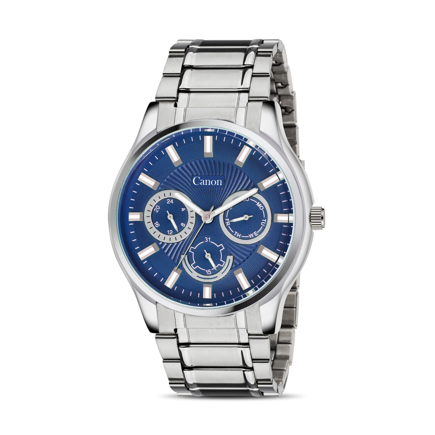 Introducing The Dominion Royal Blue, the most vibrant and energetic timepiece in the Canon Quartz Dominion Series. This men's blue watch is designed for the modern man whose ambitions reach limitless horizons. It perfectly blends bold style with essential functionality, making it a standout accessory.