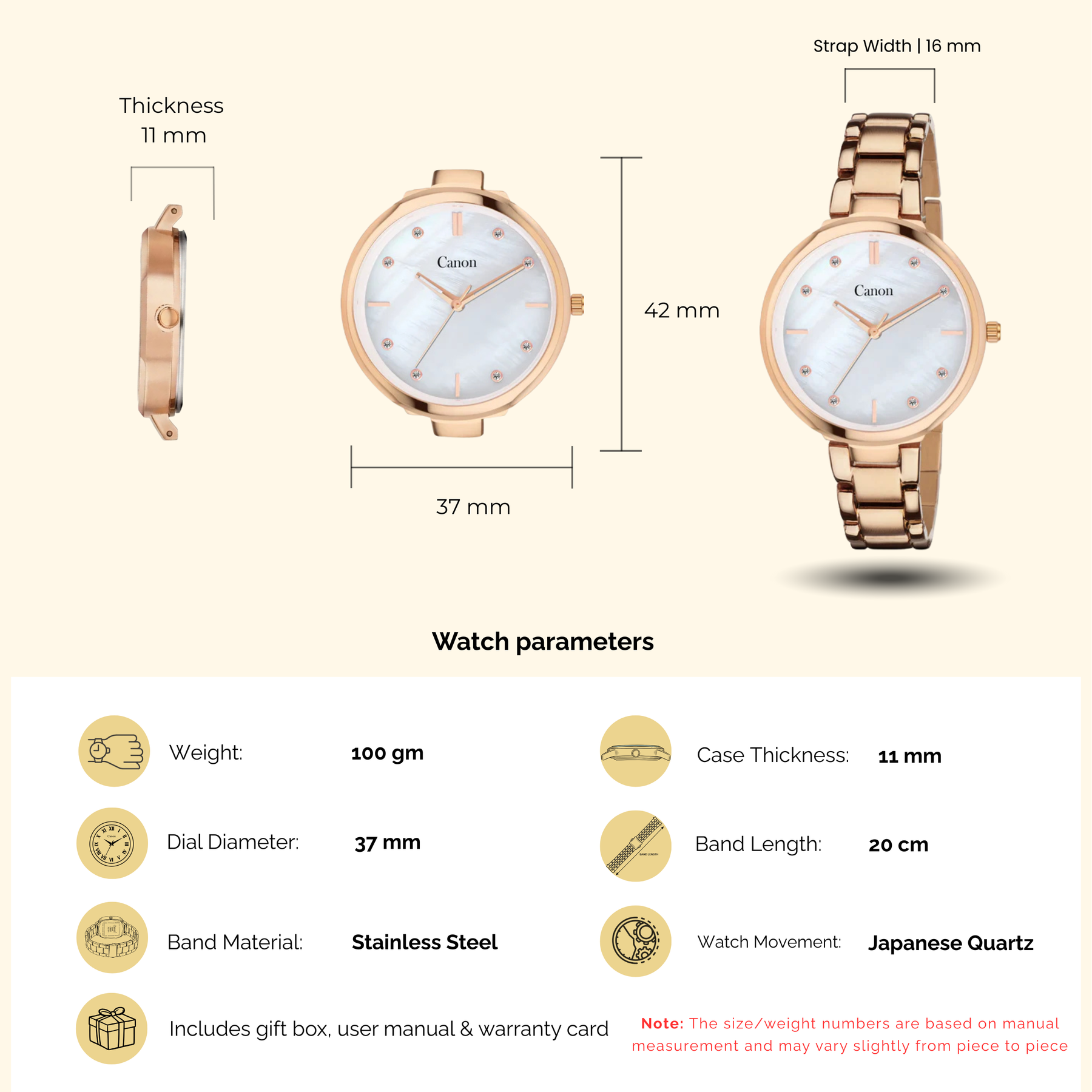 Canon Quartz Mother of Pearl Watch For Her - Pearl White