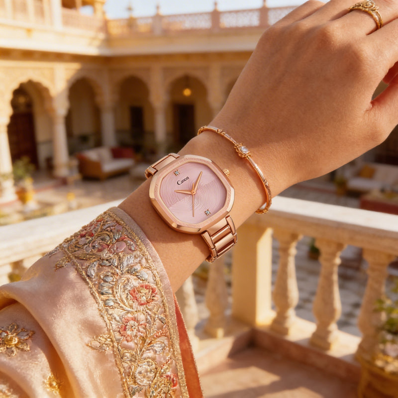 A: Canon Quartz says its materials are chosen to be hypoallergenic and kind to Indian skin types, and it notes high-grade stainless steel with negligible nickel content.