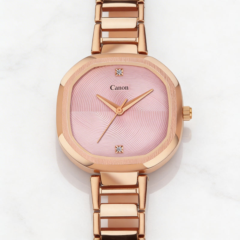 Canon Quartz Square Watch For Women - Baby Pink