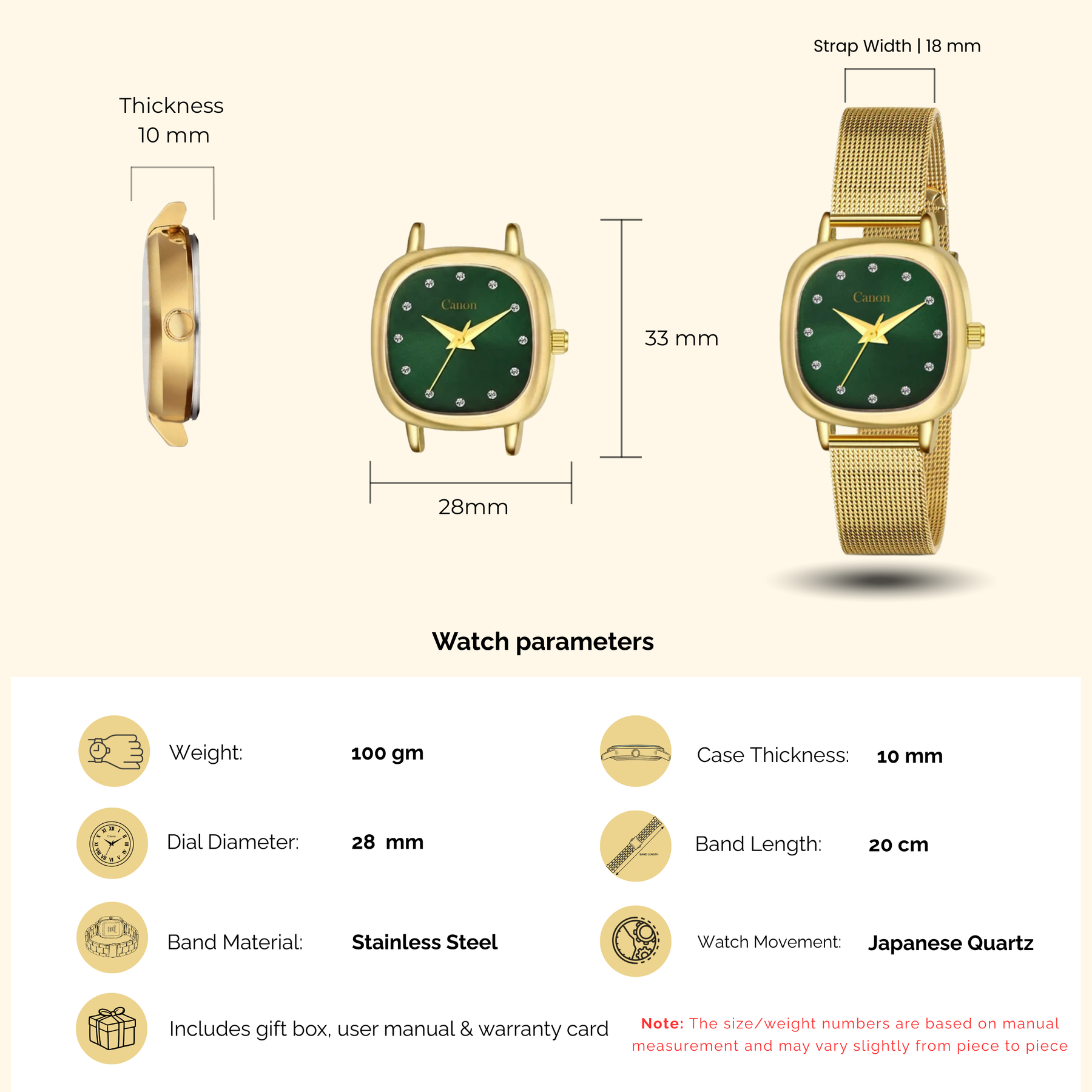 With design cues from both vintage rectangular watches and today's chic fashion accessories, this timepiece is both nostalgic and forward-thinking. It belongs among trusted favorites like the casio vintage gold and classic gold watch women's series, yet stands apart with its distinctive green dial and refined details.